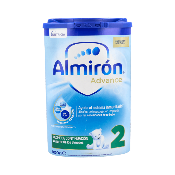 Almirón Advance 2 Leche de Continuación 800gr es una leche de continuación en polvo que contiene una combinación de Omega 6, Omega 3 y oligosacáridos presentes en la leche humana. Contribuye al desarrollo cerebral y de los tejidos nerviosos. Además, gracias a su contenido en Vitaminas C y D, ayuda al normal funcionamiento del sistema inmunitario. Producto indicado desde los 6 a los 12 meses del bebé. Este envase contiene 800gr de producto y un cacito.