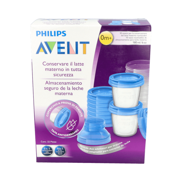 Avent Vasos de Almacenamiento con Tapa 10x180ml + Adaptadores 2uds