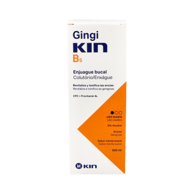El enjuague bucal Gingi-Kin B5 previene la aparición de la placa dental y de la gingivitis. Al ser líquido, puede llegar a aquellas zonas de la boca de difícil acceso a las que el cepillo no es capaz de llegar. Supone un complemento ideal para otros productos dentales, como los dentífricos o la seda. Su fórmula contiene triclosán, un potente antiséptico que, junto con la sal de zinc y la provitamina B5, contribuye a la salud de las encías protegiendo y revitalizando su tejido.