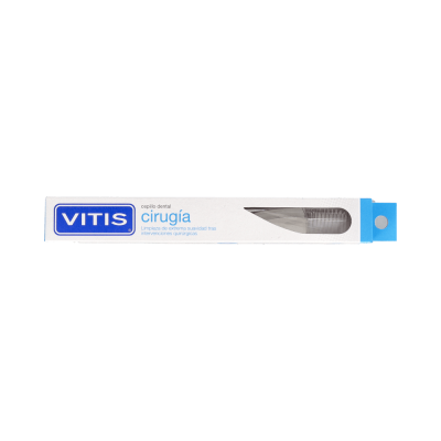 Tras el tratamiento quirúrgico de enfermedades, anomalías y lesiones en dientes, boca, maxilares o los tejidos contiguos, el espacio bucal genera una sensibilidad especial al movimiento, los cambios de temperatura o la presión del cepillado dental. Vitis ha desarrollado un cepillo dental específico para casos de cura de una cirugia dental. Este cepillo posee unos filamentos de extrema suavidad con perfil especial para ofrecer una higiene delicada tras la cirugía, evitando infecciones u otras complicaciones. Asegurarás que tus dientes quedan limpios sin dolor durante el cepillado. Además, el Vitis cepillo dental cirugia, ofrece el grado de dureza necesario para la limpieza y de maleabilización, permitiéndose flexionar y conseguir que se adapte a tu cavidad bucal.