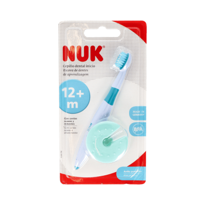 El cuidado y la higiene bucal son dos puntos muy importantes para conseguir una bonita sonrisa y primera impresión. El cuidado de los dientes y encías se debe iniciar desde pequeños, consiguiendo que los bebés adquieran y se habitúen al cepillado de sus dientes. Para que los niños desarrollen una boca sana y mantengan una buena higiene oral, Nuk ha desarrollado un cepillo dental de inicio para los niños. Su tecnología le permite dar un cuidado especial para los dientes de leche, que están creciendo en el bebé. Su forma ergonómica está preparada con asas antideslizantes para mayor comodidad durante el cepillado, y su cabezal redondo tene unas puntas suaves para no dañar la encia del bebé. Cuida la boca de tu bebé desde pequeño.