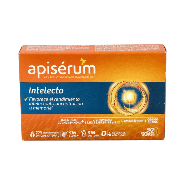 Apiserum Intelecto Capsulas son comprimidos de Jalea Real vitaminada de máxima calidad. Su composición de ingredientes naturales, favorece el redimiento intelectual, la concentración y la memoria. Combina la jalea real con 2% HDA, 7 vitaminas, aminoácidos y ginkgo biloba. Es apto tanto para adultos, como niños mayores de 14. *Sin Gluten, sin Lactosa, sin Azúcares añadidos. ¡No pierdas detalle a las cosas con Apiserum Intelecto Capsulas!