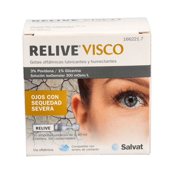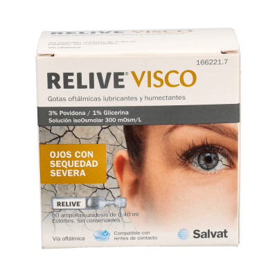 El síndrome de la sequedad ocular es muy común y también muy molesto, ya que implica una sensación de sequedad en los ojos que puede llegar a producir irritaciones, rojeces... Para evitar este tipo de síntomas es muy recomendable hidratar el ojo siempre que sea necesario. Relive® Visco está dotado de un grado superior de viscosidad para asegurar una mayor permanencia sobre la en la superficie del ojo. Tiene la capacidad de permanecer mucho más tiempo en la superficie ocular, ideal para lubricar muchas veces al día. Indicado para personas que necesitan mucha hidratación. Compatible con lentes de contacto.