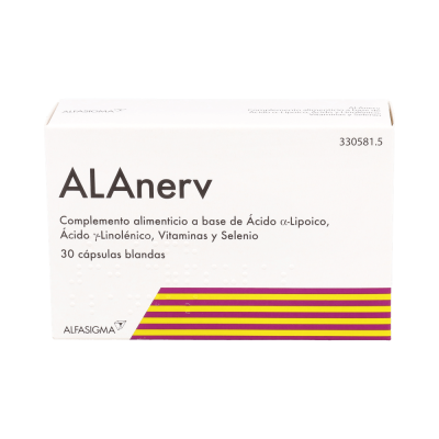 Alanerv 30cáps antioxidantes en cápsulas que nos aportan al cuerpo las vitaminas necesarias para combatir a los radicales libres. Estos son producidos por el cuerpo, pero si están presentes en exceso causan un envejecimiento prematuro del cuerpo. Mantenerlos en un correcto equilibrio es fundamental para el buen funcionamiento del cuerpo. Estos antioxidantes también tienen ingredientes que ayudan al sistema nervioso a mantenerse regulado y de este modo contribuyen a evitar sentir estados de nerviosismo que no favorecen a la salud. Propiedades de Alanerv 30cáps: Ácido α-Lipoico, estimula la producción de ATP y el restablecimiento en nuestro organismo de la vitamina E y C. Ácido y-Linolénico, es un precursor de los componentes de la membrana celular. Vitamina E, colabora en el metabolismo enertgético normal del funcionamiento del sistema nervioso. Selenio, ayuda en la protección celular frente el daño oxidativo. Complejo vitamínico B, protege las células frente el estrés oxidativo.