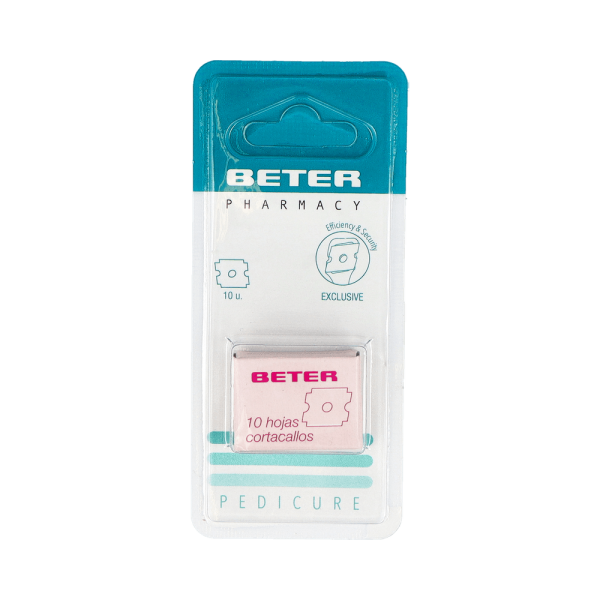Un callo supone un engrosamiento de la piel producido en una zona de los pies sometida a una presión contínua. Es uno de los problemas podales más comunes y pueden aparecer principalmente en épocas en las que tendemos a utilizar sandalias o zapatos sin calcetines. Beter hojas es un pack de 10 horas de recambio para el cortacallos de Beter. Un producto específicamente diseñado para ayudarte a eliminar estas duricias que tan mal quedan en los pies. Estas hojas son exclusivas para utilizar con el cabezal del cortacallos Beter. Fabricadas con acero al carbono, ofrecen eficacia y durabilidad. ¡Consigue unos pies bonitos y cuidados!