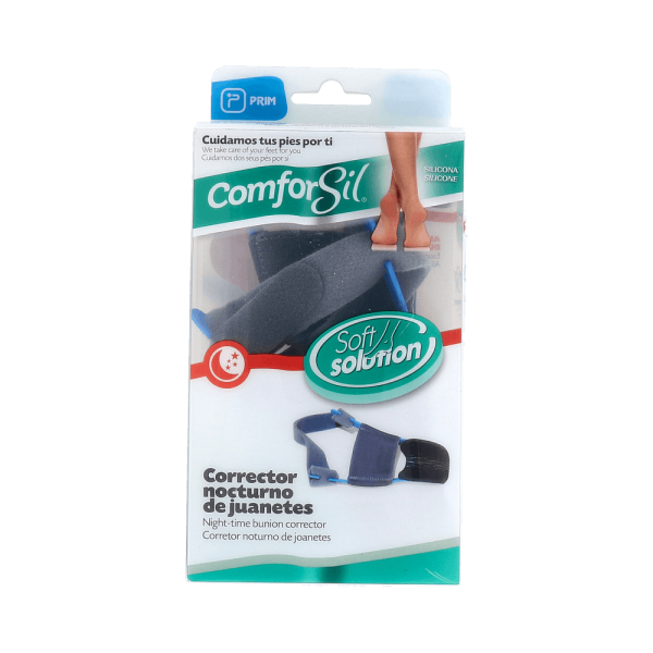Si notas tus dedos agarrotados o tienes una rozadura o juanete en tu pulgar, seguramente es porque tu posición podal no es la más saludable. Para corregirla, ¿has pensado en ayudarte de un tratamiento mecánico corrector? El corrector nocturno de juanetes de Comforsil es una férula de fácil aplicación que aliviará el dolor en tu pulgar y mantendrá tu pie en una postura saludable. Esta férula permite mantener el pie en una misma posición durante toda la noche, ejerciendo una presión contra el juanete que reduce el desarrollo del mismo. Este corrector está elaborado con silicona 100% pura e hipoalergénica. Se puede lavar y reutilizar, así como usar junto a talco en polvo.